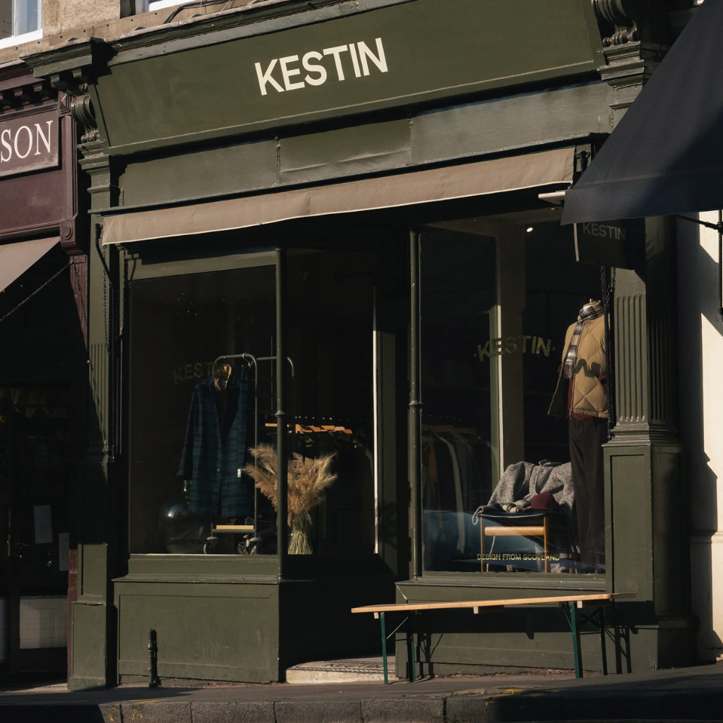 Further down the street, you’ll find Kestin, one of Scotland’s leading independent menswear names. The brand blends heritage with forward-thinking design, drawing on workwear, military and outdoor influences to create clothing with purpose. The Stockbridge flagship is a must-visit for anyone who values Scottish design done well.